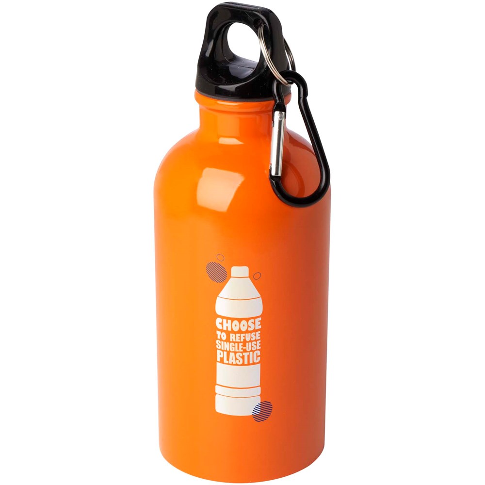 Blijf altijd gehydrateerd met deze duurzame maar lichtgewicht 400 ml waterfles van RCS-gecertificeerd gerecycled roestvrij staal. Het is de perfecte metgezel voor sport, daguitstapjes of voor gebruik op kantoor. De enkelwandige Oregon-fles heeft een draaideksel en biedt voldoende ruimte om elk soort logo toe te voegen. Klem de bevestigde karabijnhaak (niet geschikt om mee te klimmen) stevig vast aan een tas om deze niet te verliezen.