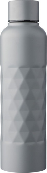 Gerecycled roestvrijstalen enkelwandige drinkfles (800 ml) van roestvrij staal 304. Voorzien van een diamantvormige structuur op de fles, schroefdop en lasergegraveerd gerecycled logo. Individueel verpakt in een bruine kartonnen doos.