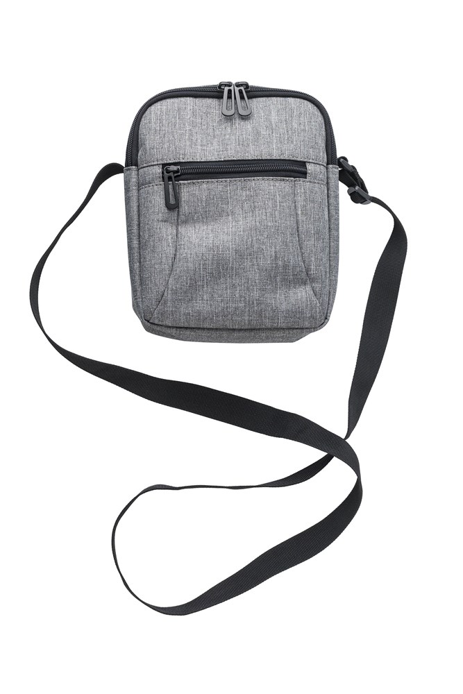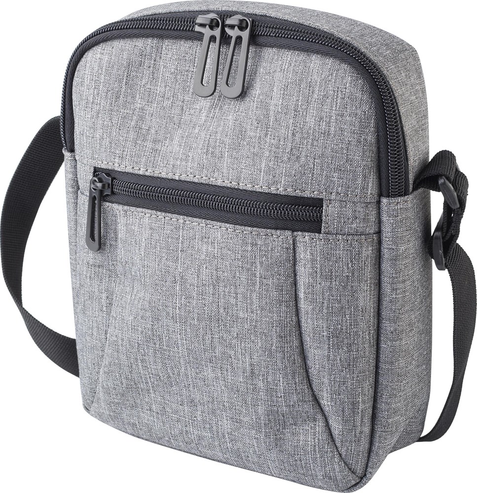 Polyester schoudertas in klein formaat. Hoofdcompartiment en zak met rits en een zak aan de binnenkant. De schouderband is aan te passen in lengte.