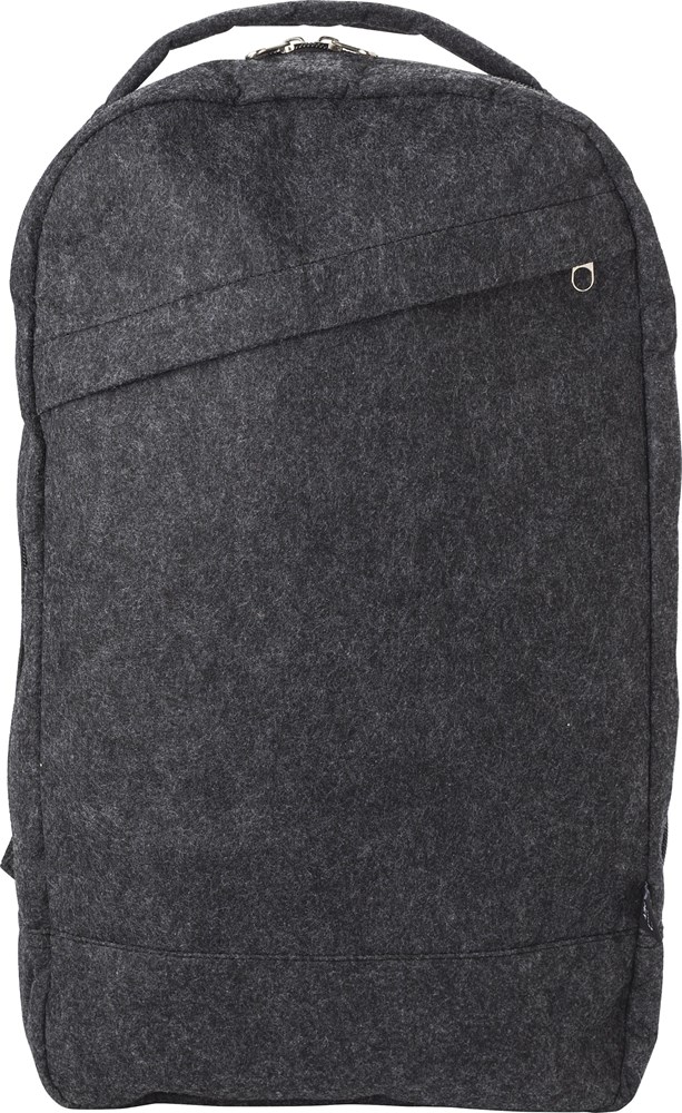 rPET vilten rugzak met één groot en klein vak die afsluitbaar zijn met een rits.