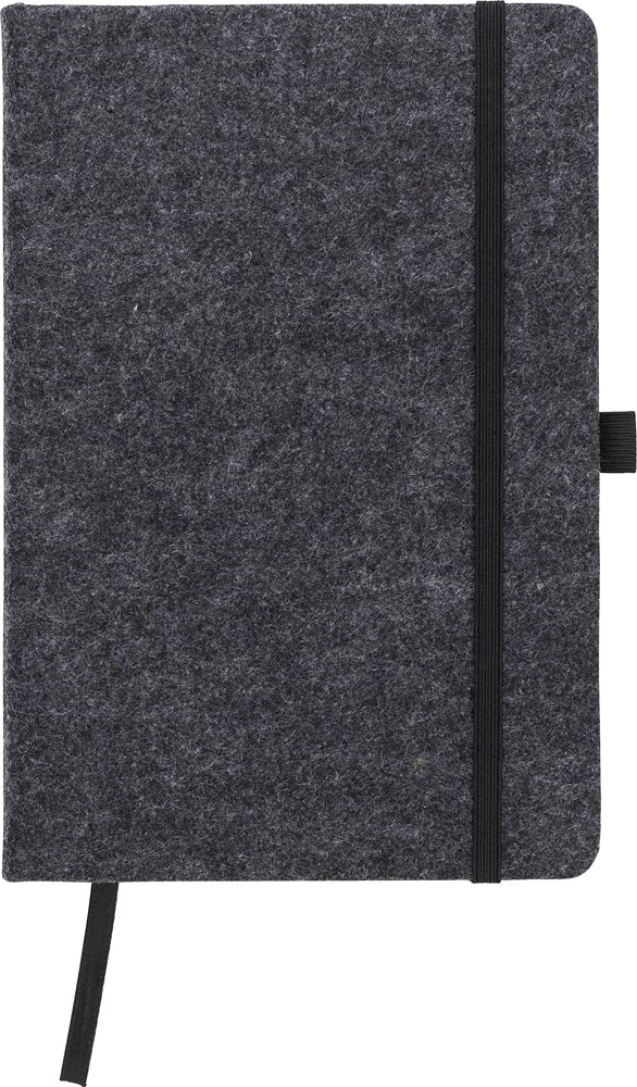 rPET vilten notitieboek (A5), met 160 gelinieerde pagina's, penlus, bladwijzer en elastische band over de omslag.