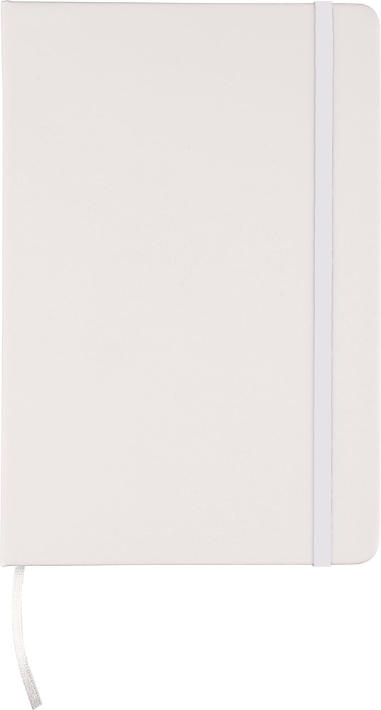 rPET notitieboek (ca. A5) met een harde kaft van rPET PU, met 80 gelinieerde pagina’s (70 gsm). Voorzien van een elastiek en lint in bijpassende kleur. Met een reliëf bedrukt gerecycled logo op de achterkant.