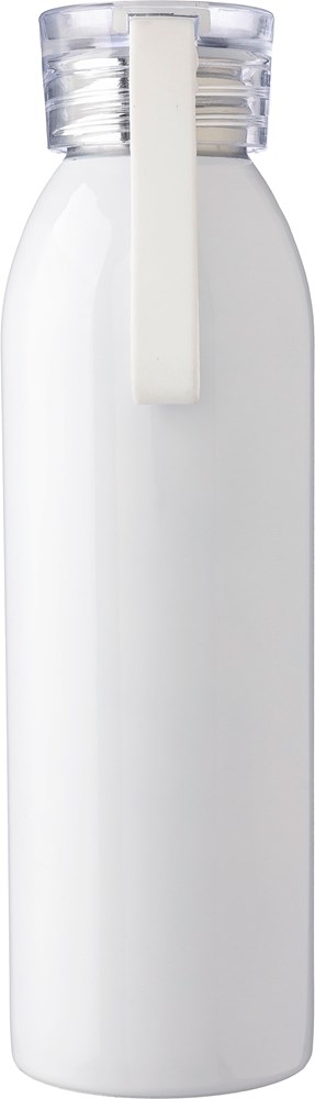 Gerecycled roestvrijstalen drinkfles (650 ml) met PS-dop en siliconen band. De fles is van roestvrij staal 304 gemaakt. Per stuk verpakt in een bruin kartonnen doos.