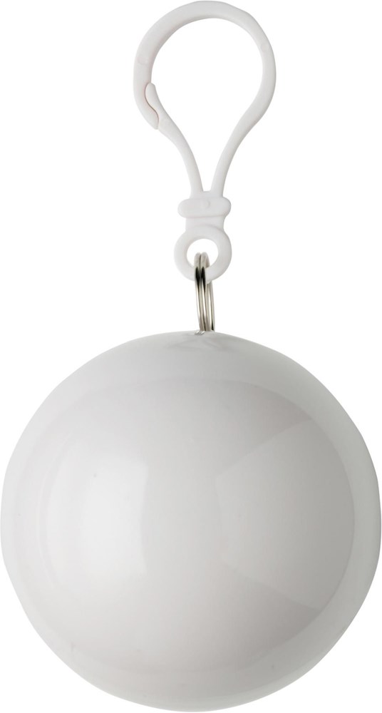 Gekleurde PVC poncho in een gelijk gekleurde kunststof bal met karabijnhaak.
