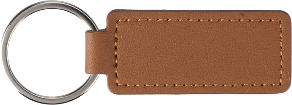 Sleutelhanger van appelleer en PU met metalen ring. Gemaakt van 30% appelleer en 70% PU. Inclusief diepdruk in de vorm van een appel. Verpakt in een éénkleurig bedrukt kraftpapier kartonnen hoes.