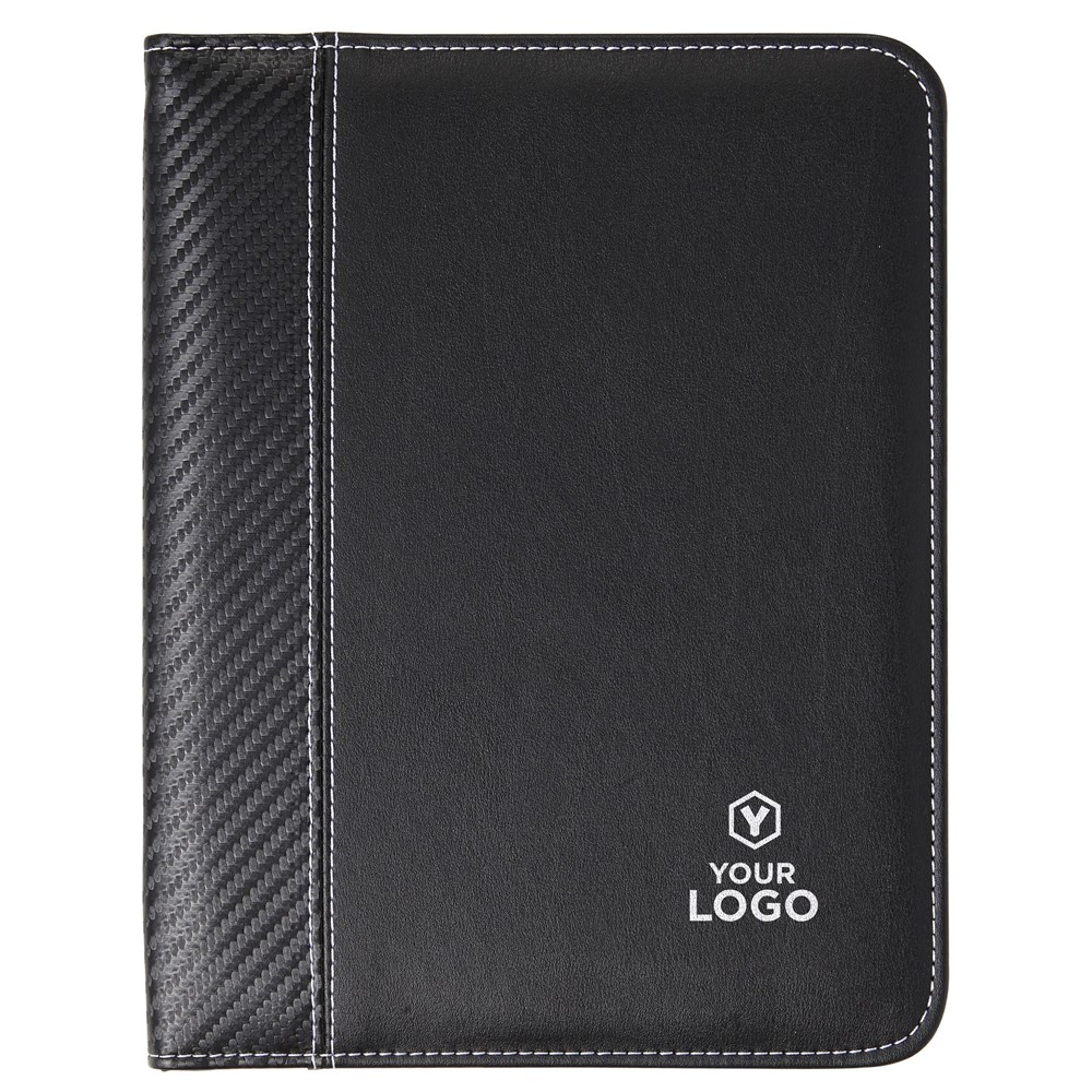 Documentenmap (A5) met PU omslag met ritssluiting, witte stiksels, een elastische penlus, 6...meer