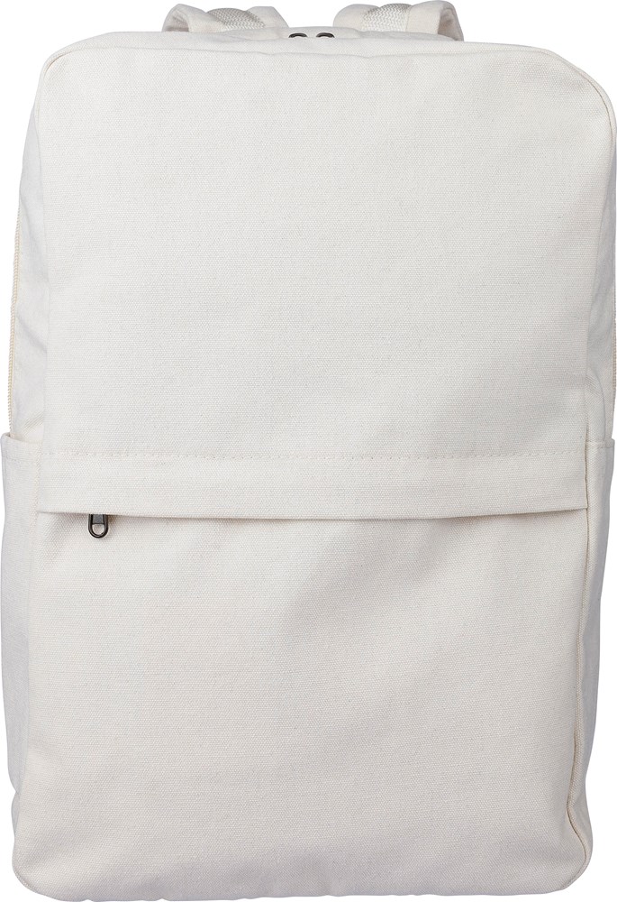 Gerecyclede polycotton (330 gsm) rugzak met een 210D polyester voering. Voorzien van een ruim hoofdvak met ritssluiting, een gewatteerd 15-inch laptopvak, twee binnenvakken en twee buitenvakken, waaronder een zijvak en een klein voorvak met ritssluiting. Het ontwerp bevat gewatteerde, verstelbare schouderbanden en een handvat. Capaciteit: 14L. Draagvermogen: 13 kg. Inclusief label.