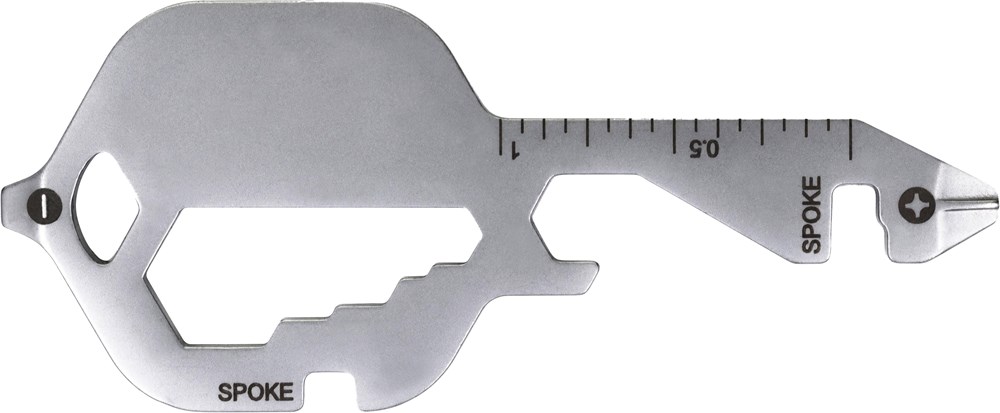De Kee Shape multitool, gemaakt van duurzaam 2CR13 martensitisch roestvrij staal, combineert 12 essentiële gereedschappen in een compact, sleutelhanger-vormig ontwerp dat eenvoudig aan elke sleutelhanger kan worden bevestigd. Het bevat een fietsspaken sleutel, steeksleutels (4-10 mm), flesopener, Phillips- en platte schroevendraaiers, draadbuiger en centimeter- en inchlinialen. Geleverd in een strakke zwarte doos, is het een handig alles-in-één gereedschap voor dagelijkse behoeften.