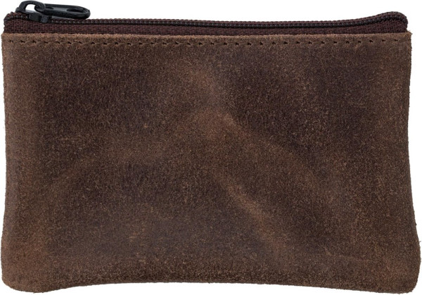 Leren sleuteletui met metalen ring en rits. Gemaakt van afvalmateriaal van lederen schortenmeer