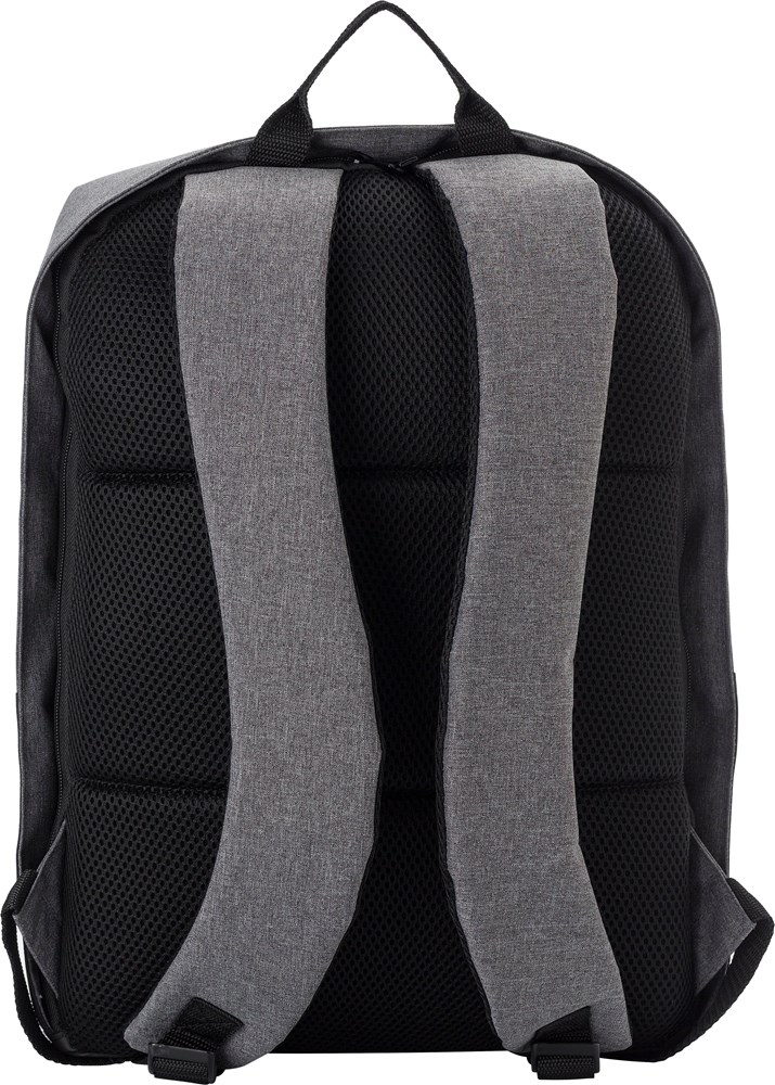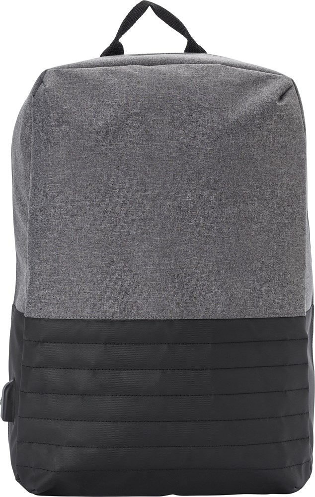 PVC (600D + 300D) tweekleurige anti-diefstal rugtas met verstelbare en gewatteerde schouderbanden en gewatteerde rug. Groot vak met rits en gewatteerd laptop vak (15 inch). USB aansluiting aan de buitenkant, met kabel aan de binnenkant.