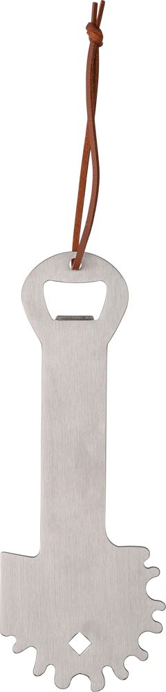 Roestvrijstalen barbecuereiniger met geïntegreerde flesopenerfunctie. Voorzien van een ophangkoord van PU voor gemakkelijke opslag. Individueel verpakt in een kraftpapieren hoesje.