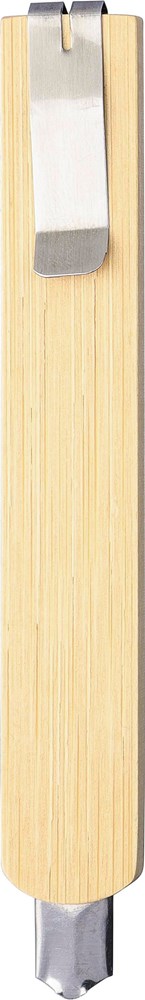 Metalen afbreekmes met een bamboe handgreep. Voorzien van een metalen clip aan de achterkant om...meer