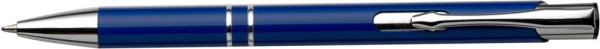 Aluminium balpen, blauwschrijvend, met metalen clip, tip en top. Voorzien van Duitse...meer