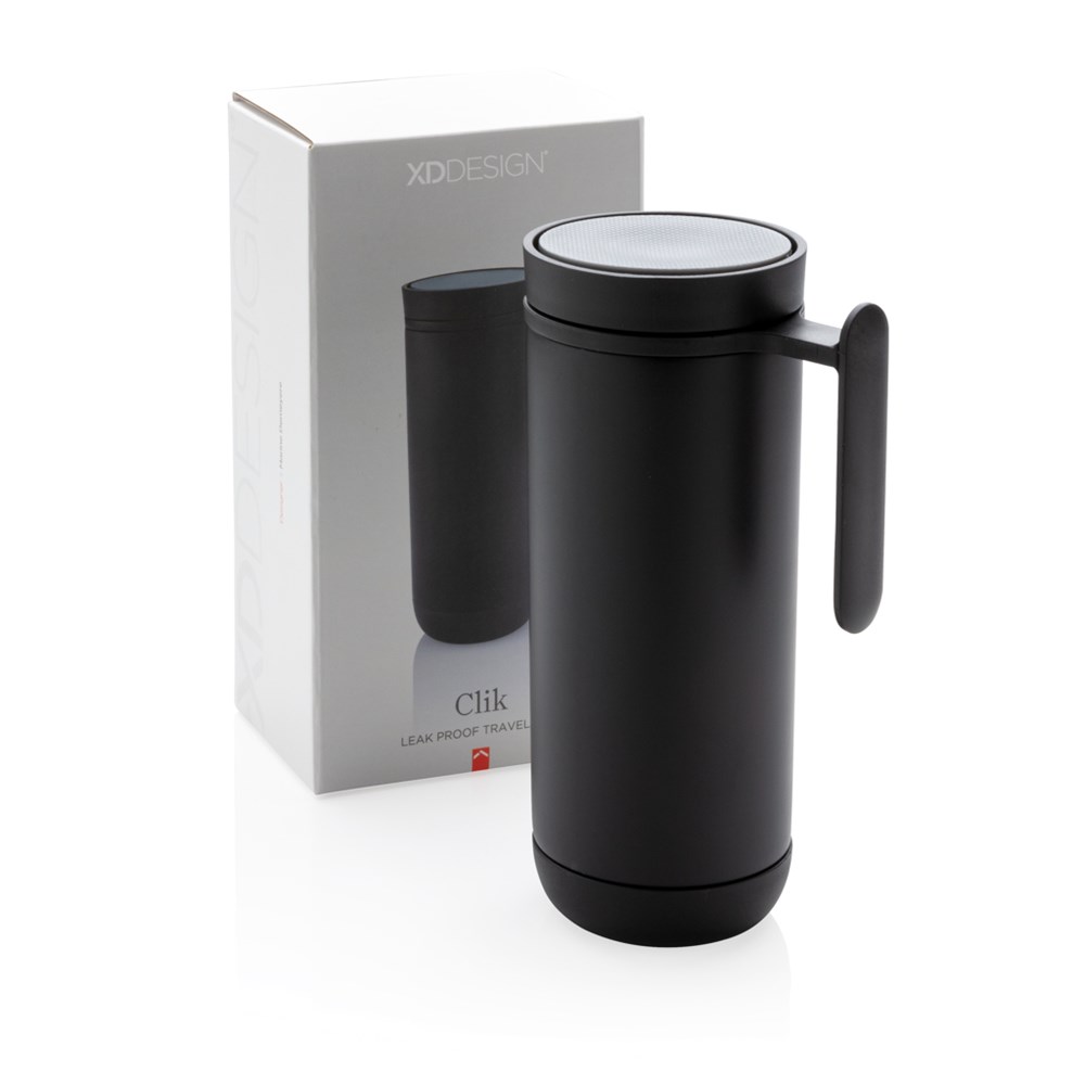 Click est un mug antifuite 225ml à double parois, pratique qui peut être ouvert et fermé par une simple pression et son design permet de le démonter complètement pour le recycler et garder un monde plus propre. Sans BPA. Modèle déposé®