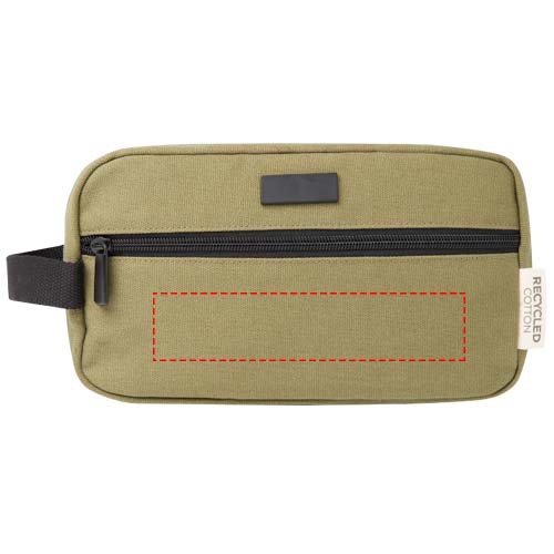 Pochette pour accessoires de voyage en toile recyclée certifiée GRS et doublure en RPET certifiée GRS. Dotée d'une poche frontale zippée et d'un compartiment principal zippé avec des poches de rangement, et d'une sangle confortable. La plaque métallique décorative peut faire briller un logo grâce à sa finition subtile et mate. Capacité : 3,5 litres.