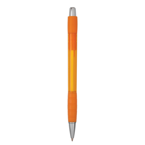 Stylo à bille rétractable populaire avec corps de couleur translucide, attribut de couleur solide et touches chromées.