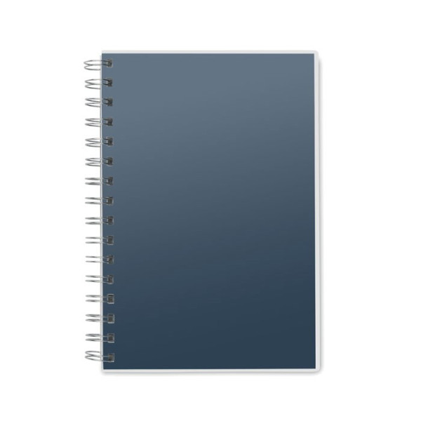 Carnet A5 à spirale avec couverture RPET. 160 pages blanches lignées recyclées (80 feuilles).plus