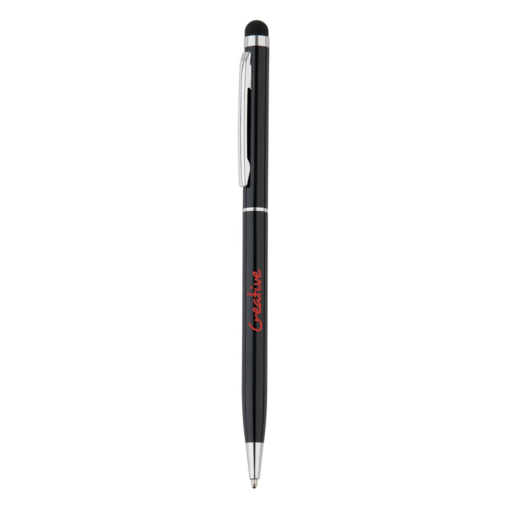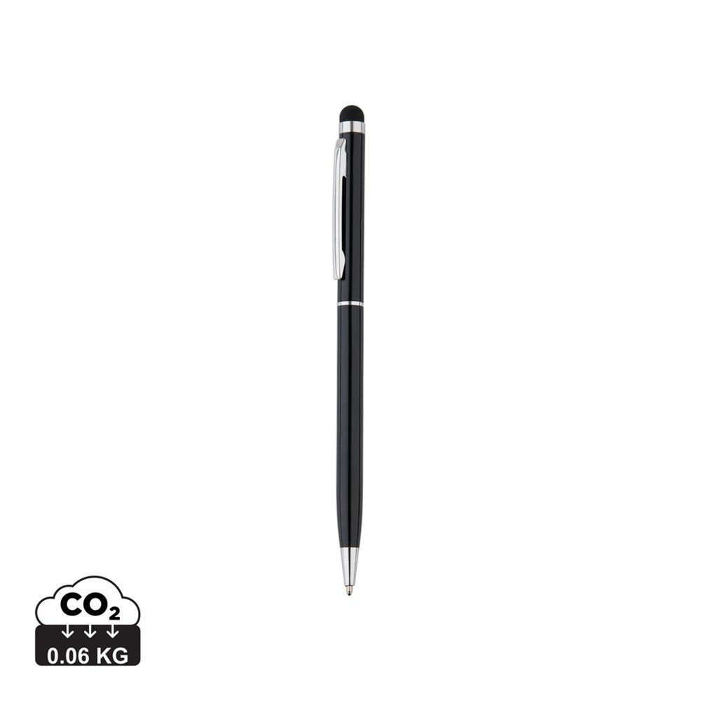 Stylo à bille en aluminium avec embout stylet, facile d’usage avec son mécanisme de torsion.