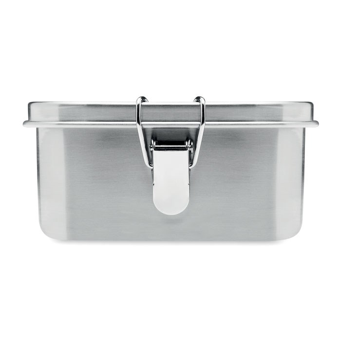 Boîte à lunch en acier inoxydable avec boucles latérales solides et sûres. Comprend un séparateur intérieur. Capacité : 1200 ml.