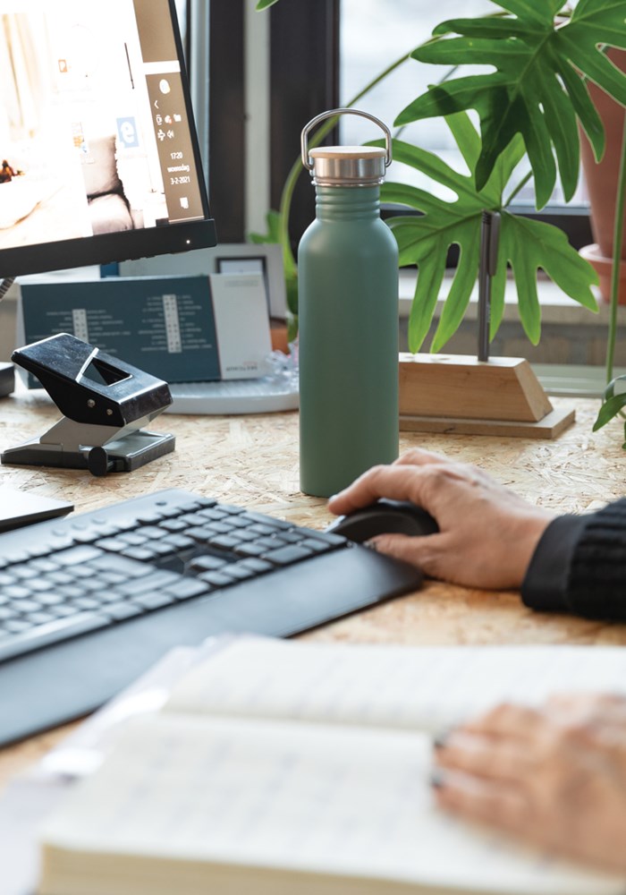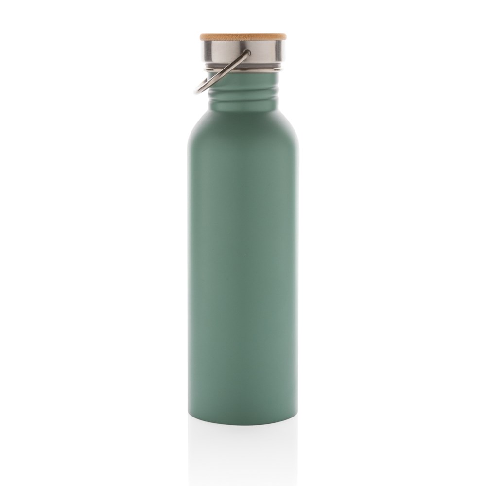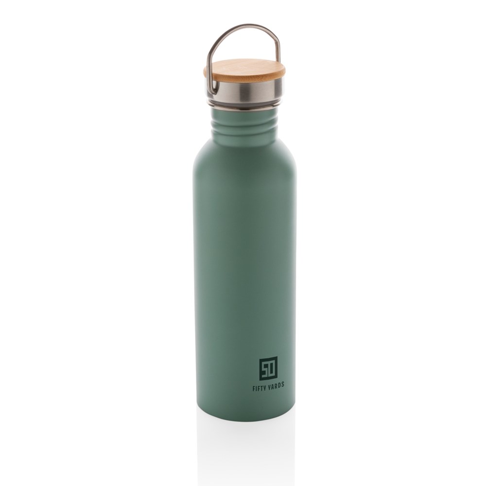 Bouteille 710ml à paroi simple en acier inoxydable avec un couvercle en acier inoxydable orné d'un magnifique morceau de bambou. Sans BPA. Lavage à la main uniquement.
