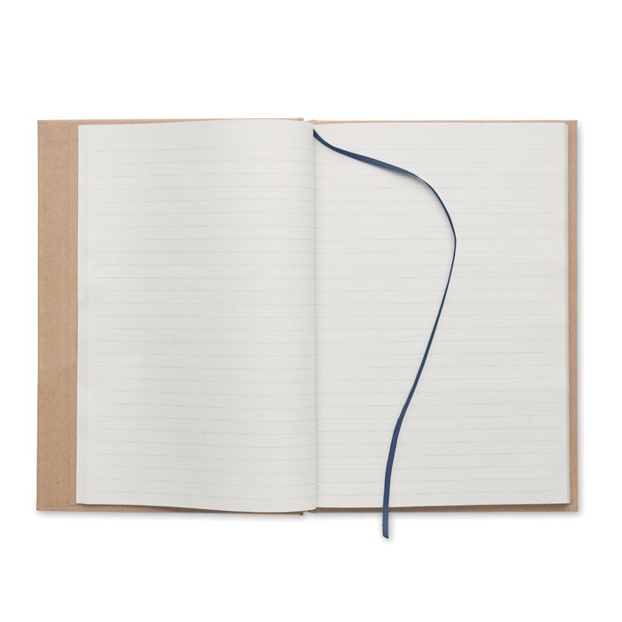 Cahier A5 avec couverture rigide en carton recyclé. Relié par un étui. 200 pages lignées en papier recyclé (100 feuilles/80 gsm). Bande élastique de fermeture et ruban marque-page. Fabriqué dans l'UE.