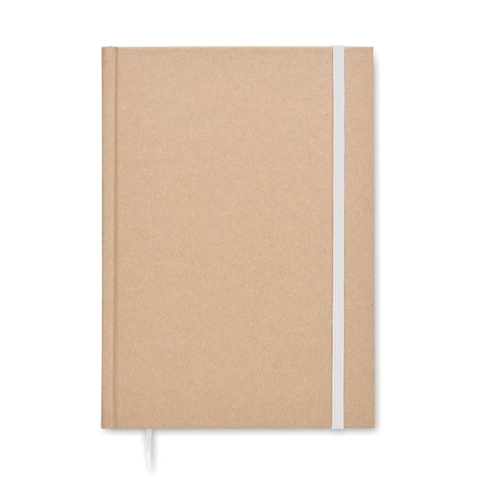 Cahier A5 avec couverture rigide en carton recyclé. Relié par un étui. 200 pages lignées en papier recyclé (100 feuilles/80 gsm). Bande élastique de fermeture et ruban marque-page. Fabriqué dans l'UE.