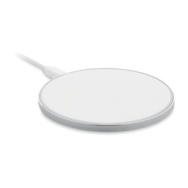 Chargeur sans fil en aluminium 10W avec verre sur le dessus. Lumière bleue lors de la charge....plus