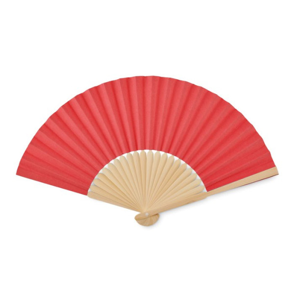 Eventail en bambou avec tissu en papier. Le bambou est un produit naturel, et présente de légères variations de couleur, de décoration et de tailles.
