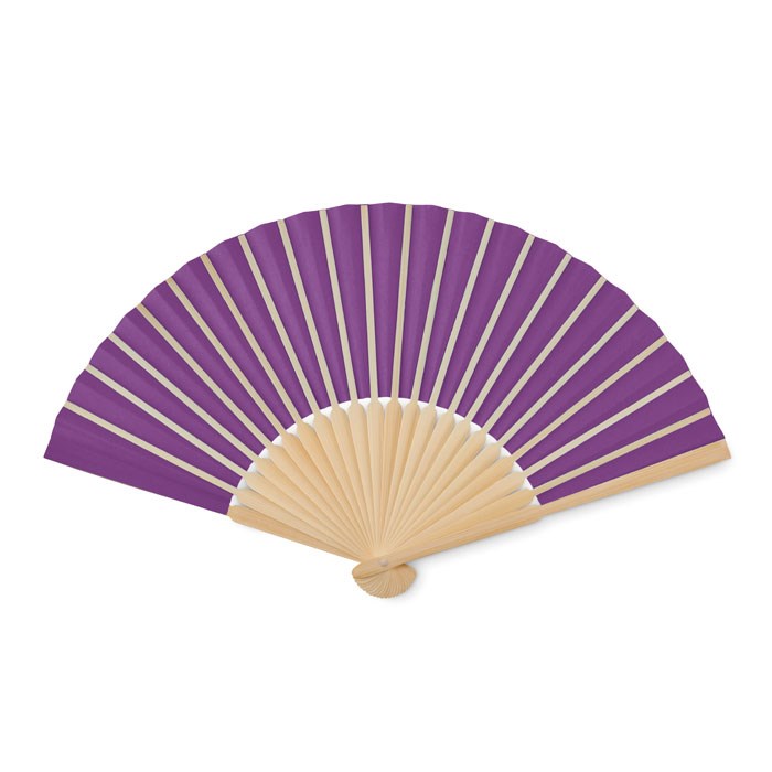 Eventail en bambou avec tissu en papier. Le bambou est un produit naturel, et présente de légères variations de couleur, de décoration et de tailles.