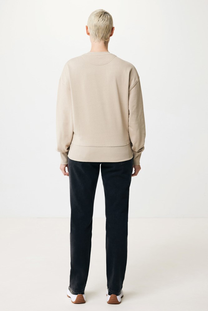 Sweater unisexe à coupe décontractée et col rond fabriqué en 100 % coton, dont 50 % recyclé et 50 % biologique, en 340 G/M². Le pull a des épaules tombantes, des manches longues plus larges et côtes 2x2. L'intérieur est en polaire brossée pour plus de confort. L'utilisation de véritables matériaux de tissus recyclés & organiques et les déclarations d'impact environnemental sont garanties, en utilisant le traceur physique disruptif AWARE™ et la technologie blockchain. En scannant le code QR, vous aurez accès à un passeport numérique dédié du produit. 2 % des recettes de chaque produit vendu seront reversés à Water.org. Ce produit est certifié OEKO-TEX® STANDARD 100 Centexbel. En raison de la nature des fils recyclés, des impuretés et des variations de couleur peuvent apparaître.