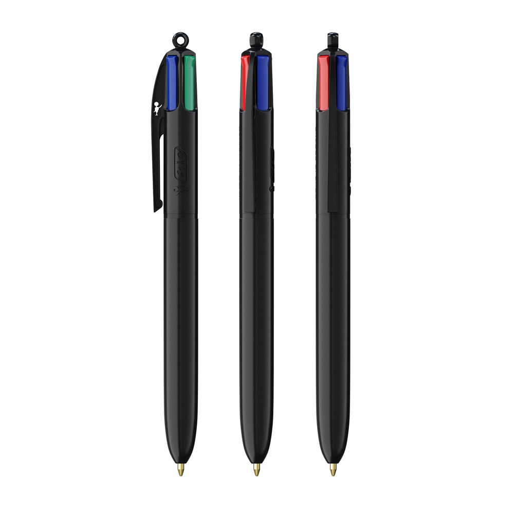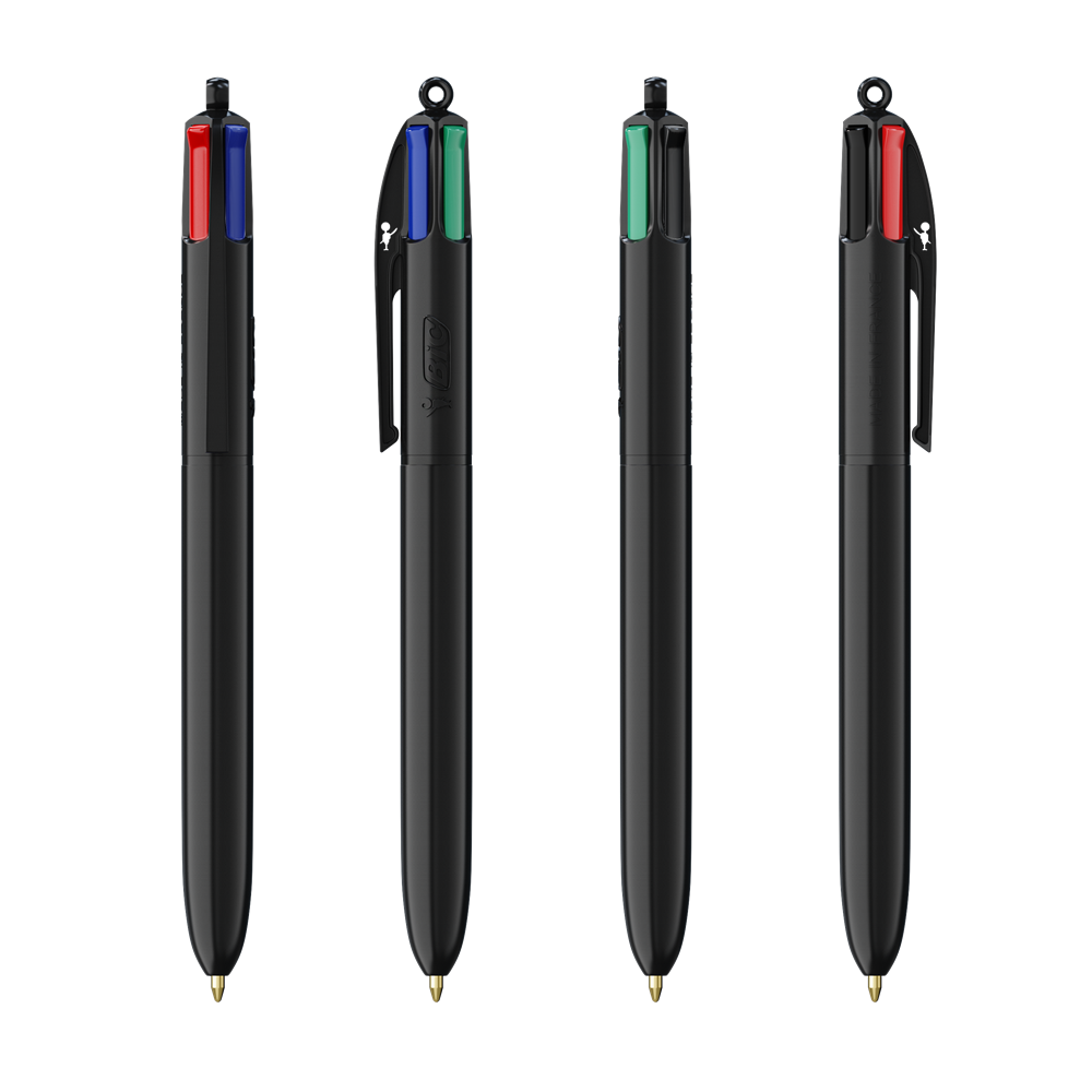 Simple, fiable, ingénieux. Quatre couleurs d’encre différentes sur un seul stylobille: bleu, noir, rouge, vert. Un stylo emblématique toujours à la mode ! Marquez-le tout en couleur avec la qualité du britePixTM Digital. Notre emblématique BIC® 4 Couleurs® devient plus durable, avec désormais 13 % de plastique en moins dans la partie supérieure ! De juin 2023 à juin 2024, veuillez retenir que vous pouvez recevoir votre ligne de commande avec le clip standard ou le nouveau clip contenant moins de plastique.