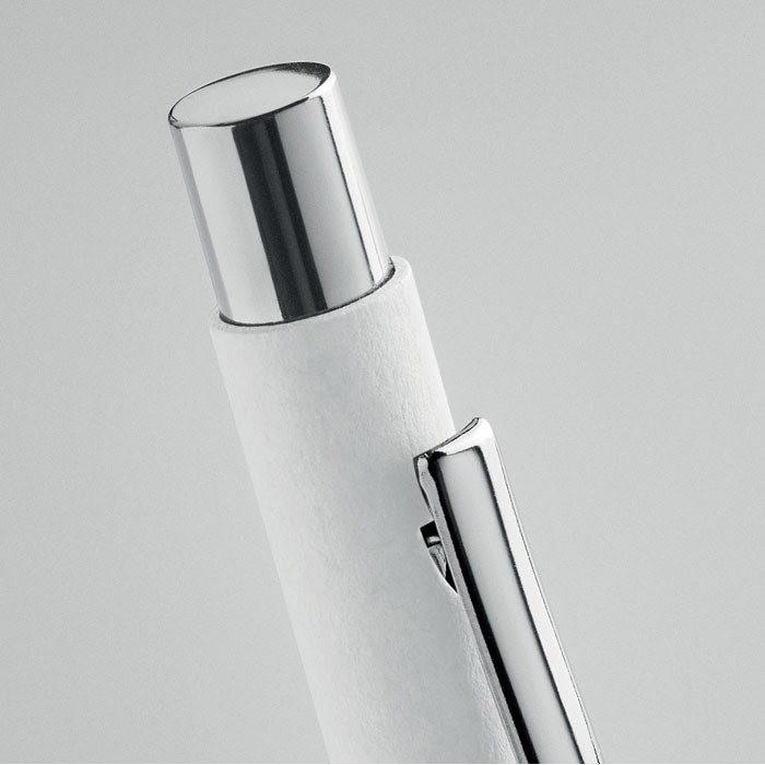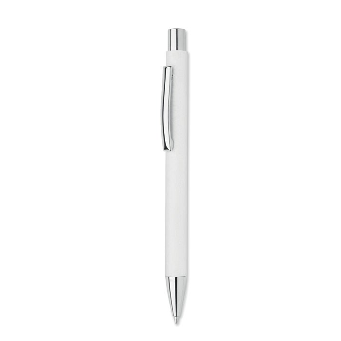 Stylo à bille à bouton poussoir en papier recyclé (50%)et clip en métal. Encre bleue....plus