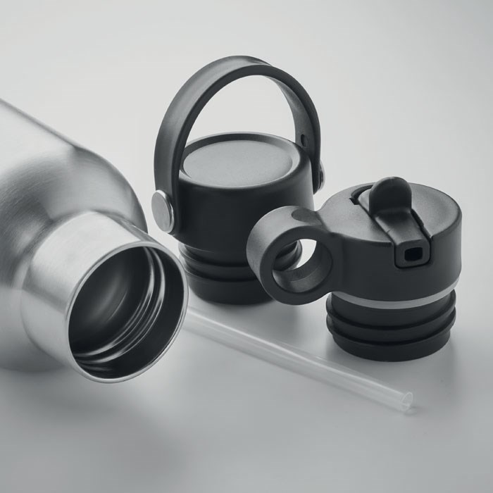 Bouteille à double paroi en acier inoxydable recyclé (90% d'acier inoxydable recyclé et 10% d'acier inoxydable) bouchon à vis anti-fuite et bouchon paille intégré interchangeable. Capacité : 700 ml.