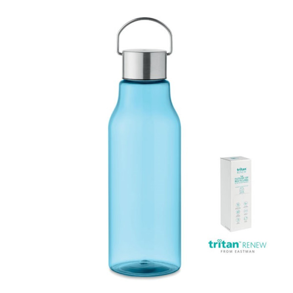 Bouteille Tritan Renew™ sans BPA avec couvercle à poignée en acier inoxydable. Anti fuite. Capacité : 800ml. Ce produit est dérivé de 50% de déchets plastiques certifié ISCC mass balance.