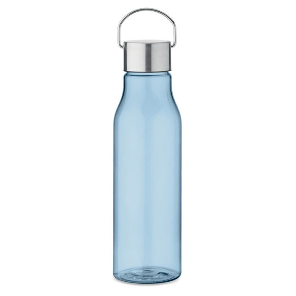 Bouteille en RPET sans BPA avec bouchon en acier inoxydable et poignée. Anti fuite. Capacité : 600 ml.