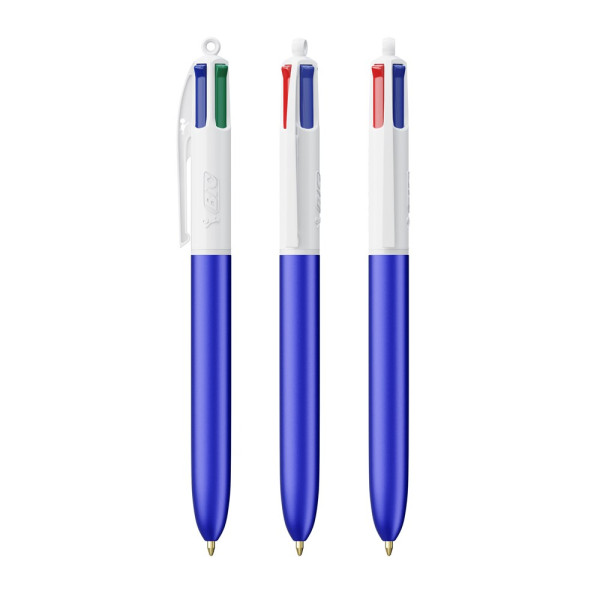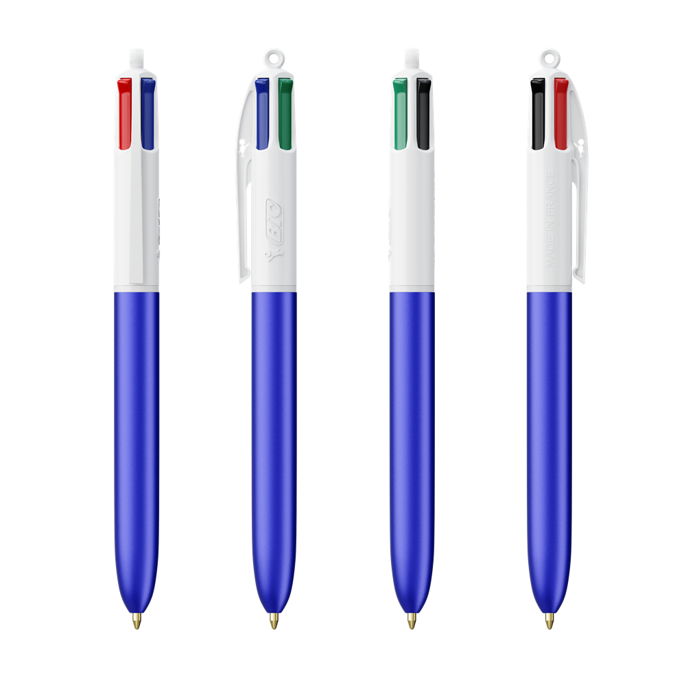 Découvrez la version glamour du BIC 4 couleurs. Maintenant, ce stylo emblématique s´habille en 5 spectaculaires couleurs givrées dans sa version BIC® 4 couleurs Glacé. Notre emblématique BIC® 4 Couleurs® devient plus durable, avec désormais 13 % de plastique en moins dans la partie supérieure !