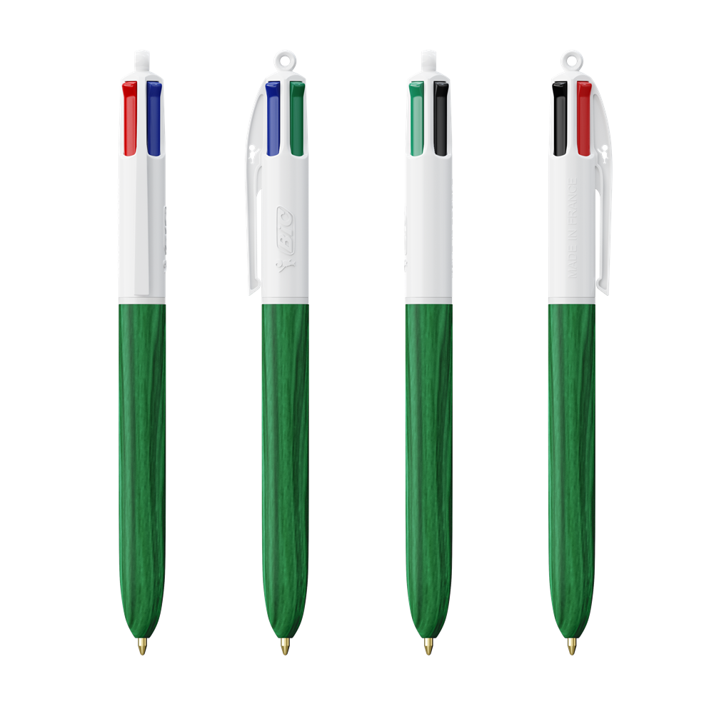 Notre stylo à bille iconique BIC® 4 Couleurs maintenant avec un effet bois. Laissez-vous impressionner par cette finition spectaculaire! Notre emblématique BIC® 4 Couleurs® est plus durable, avec 13 % de plastique en moins dans la partie supérieure !