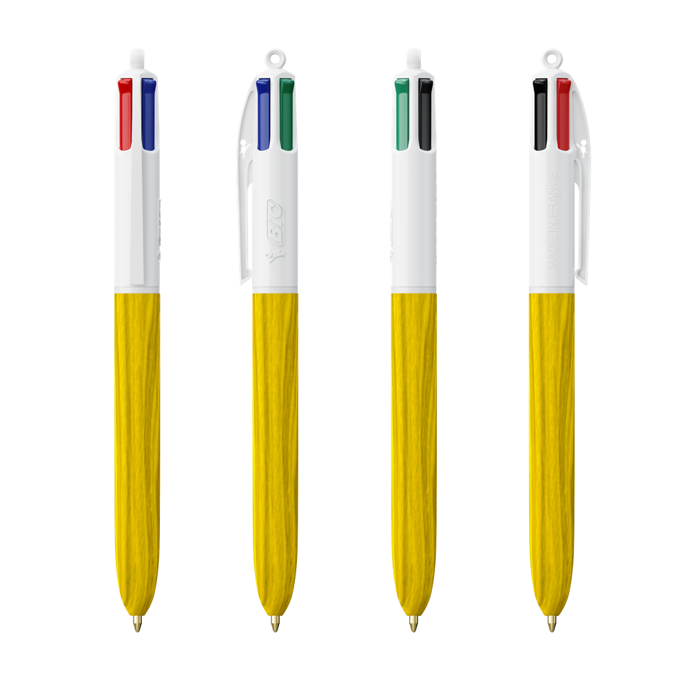 Notre stylo à bille iconique BIC® 4 Couleurs maintenant avec un effet bois. Laissez-vous impressionner par cette finition spectaculaire! Notre emblématique BIC® 4 Couleurs® est plus durable, avec 13 % de plastique en moins dans la partie supérieure !
