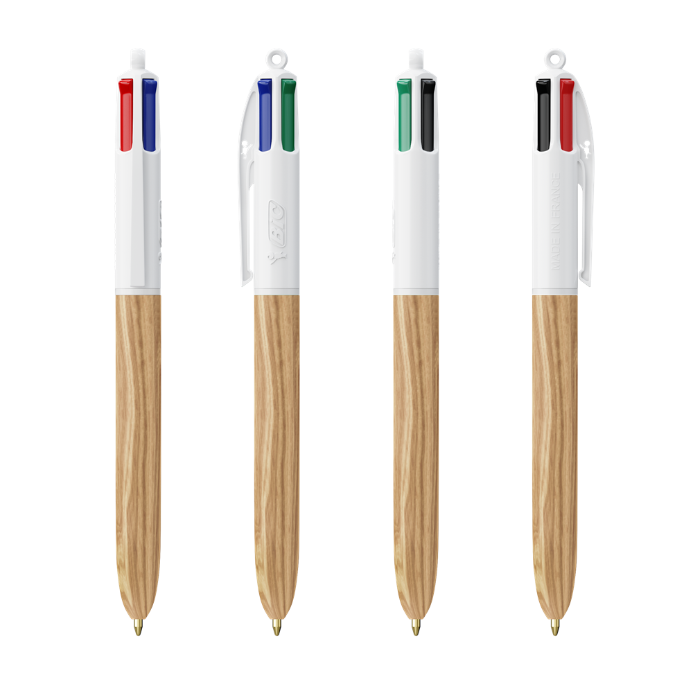 Notre stylo à bille iconique BIC® 4 Couleurs maintenant avec un effet bois. Laissez-vous impressionner par cette finition spectaculaire! Notre emblématique BIC® 4 Couleurs® est plus durable, avec 13 % de plastique en moins dans la partie supérieure !