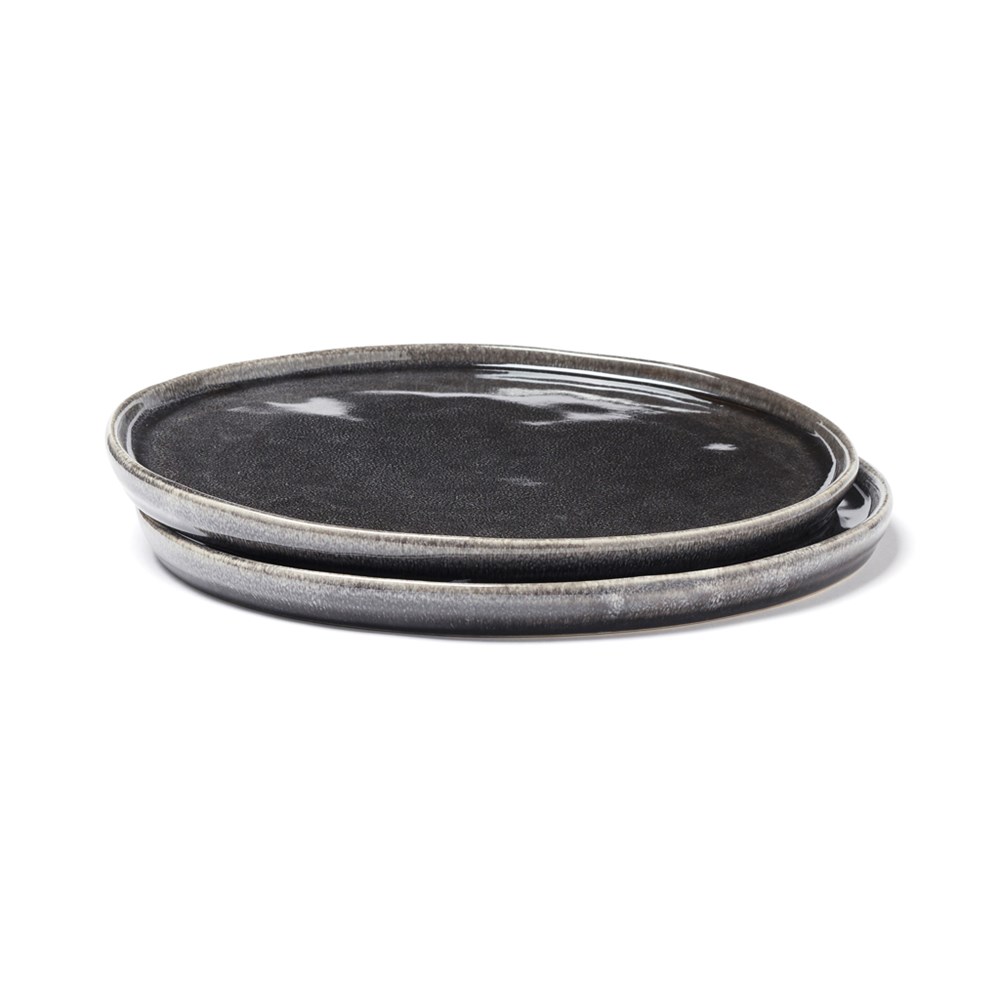 Ensemble de deux assiettes en grès. Nomimono puise son inspiration dans la nature et la terre qui nous entoure, créant cette gamme rustique dans des tons de terre naturels où il n'y a pas deux articles identiques. Le japonais rencontre le scandinave, le rustique rencontre le moderne. Des objets de collection pour un service terre-à-terre et inspirant. Chaque article est fait à la main et unique. Chaque article est examiné trois fois pour obtenir le bon type de finition. Passe au lave-vaisselle et au micro-ondes.