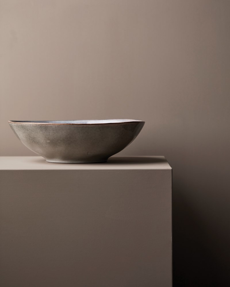 Joli bol de service avec des bords hauts et inégal. Parfait pour servir une délicieuse salade de nouilles ou un plat de pâtes. Nomimono puise son inspiration dans la nature et la terre qui nous entoure, créant cette gamme rustique dans des tons de terre naturels où il n'y a pas deux articles identiques. Le japonais rencontre le Scandinave, le rustique rencontre le moderne. Des objets de collection pour un service terre-à-terre et inspirant. Chaque article est fait à la main et unique. Chaque article est examiné trois fois pour obtenir le bon type de finition. Passe au lave-vaisselle et au micro-ondes.