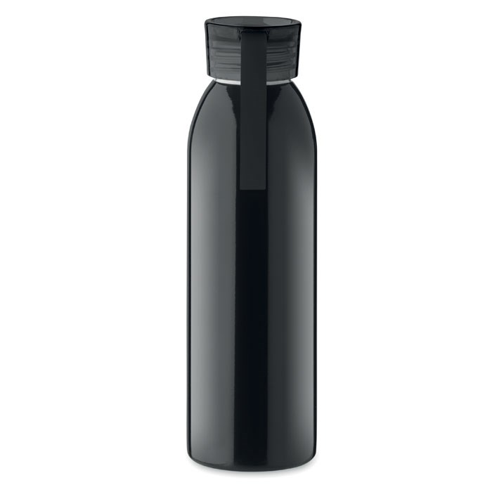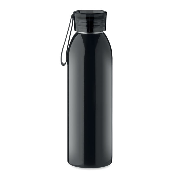 Bouteille en acier inoxydable à simple paroi avec bouchon en PP et lanière en silicone. Capacité : 650 ml. Comme il s'agit d'un gobelet à paroi simple, un transfert de chaleur peut encore se produire.