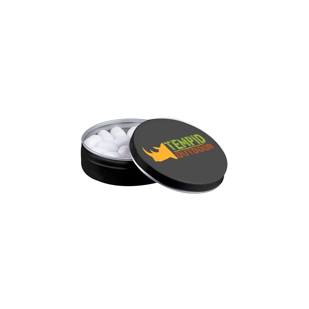 Mat zwart blikje gevuld met ca. 18 gram Tic-Tac, voorzien van een full colour bedrukking op het deksel. Inclusief ingrediëntensticker en seal.
