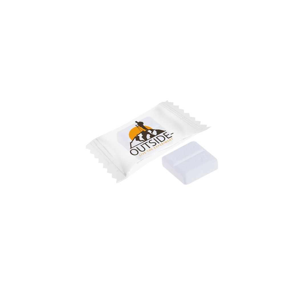 Mini Dextro Energy flowpack in transparante folie met 1 mini Dextro Energy, voorzien van een all-over full colour bedrukking