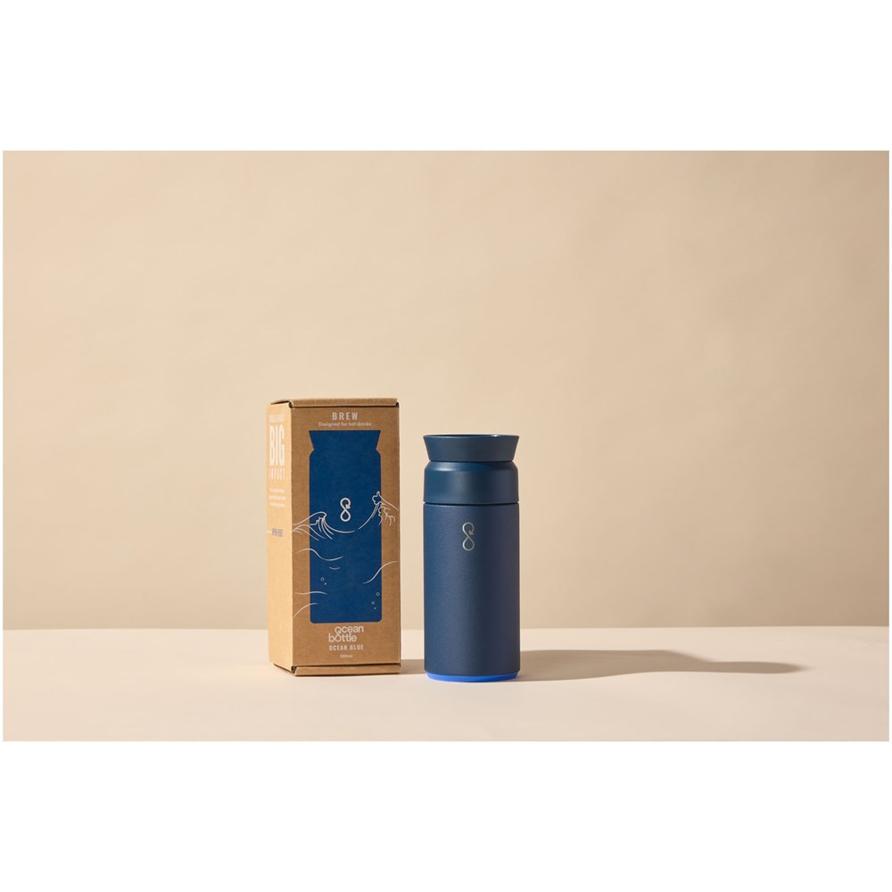 Le flacon à infusion Ocean Bottle de 350 ml est un excellent choix pour les boissons chaudes en déplacement. La bouteille contient de l'acier inoxydable recyclé et du plastique recyclé provenant des océans. Un flacon à infusion permet de recueillir 1 000 bouteilles en plastique et améliore les moyens de subsistance dans les communautés côtières. Le flacon est doté d'une puce intelligente NFC permettant de collecter plus de plastique à chaque recharge. Le couvercle innovant 360 permet aux arômes de circuler et la double isolation thermique en acier inoxydable recyclé maintient les boissons chaudes pendant six heures.