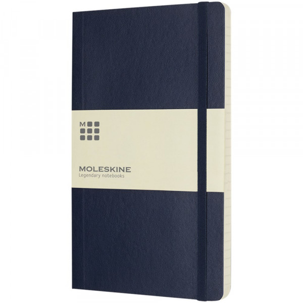 Le carnet Moleskine Classic format large (13 x 21 cm) à couverture souple est disponible dans une vaste gamme de couleurs éclatantes et élégantes. Le carnet dispose d’une couverture souple en carton avec coins arrondis, papier sans acide, marque-page et fermeture élastique. Un espace figure sur la première page pour décrire la récompense qui attend celui qui le trouvera en cas de perte. Attachée à la quatrième de couverture, une poche intérieure extensible décrit l’histoire du Moleskine. La poche peut être utilisée pour les notes et feuilles volantes. Contient 192 pages lignées couleur ivoire.