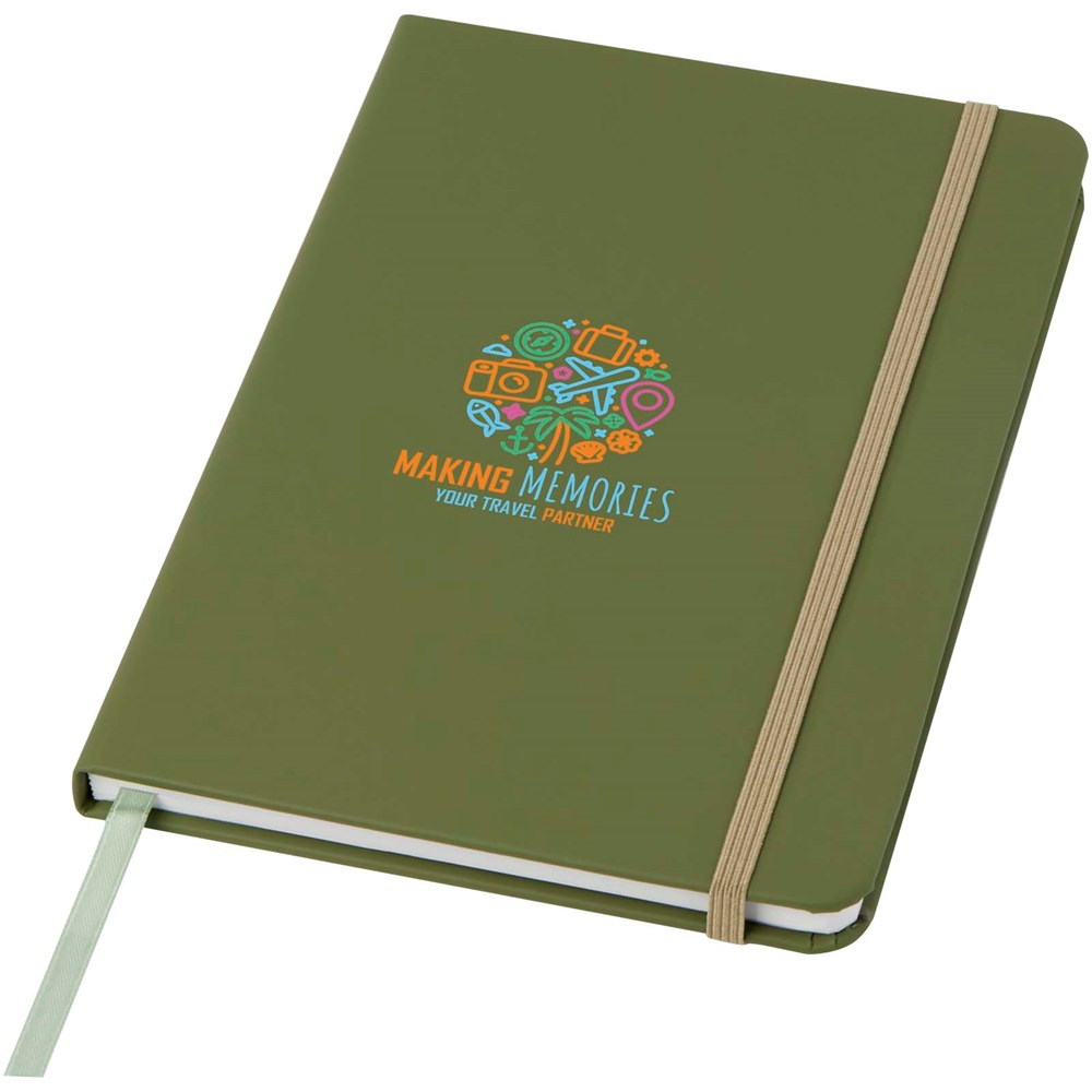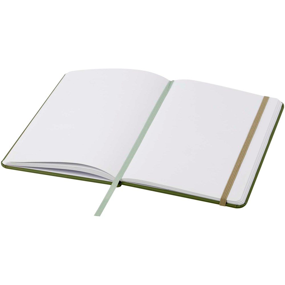 Carnet A5 avec fermeture élastique de couleur assortie au carnet et un signet. Inclut 96 feuilles (60g/m2) de papier blanc.