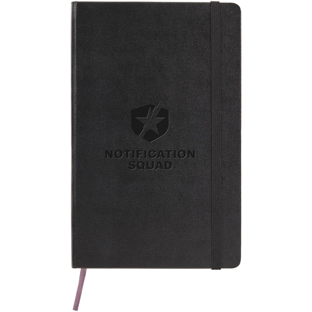 Carnet Classic Moleskine format large doté d'une couverture rigide noire, disponible dans une gamme de couleurs éclatantes et élégantes. Avec coins arrondis, fermeture élastique et ruban marque-page. Poche extensible en carton et tissu à l’intérieur de la quatrième de couverture. Contient 240 pages quadrillées couleur ivoire.