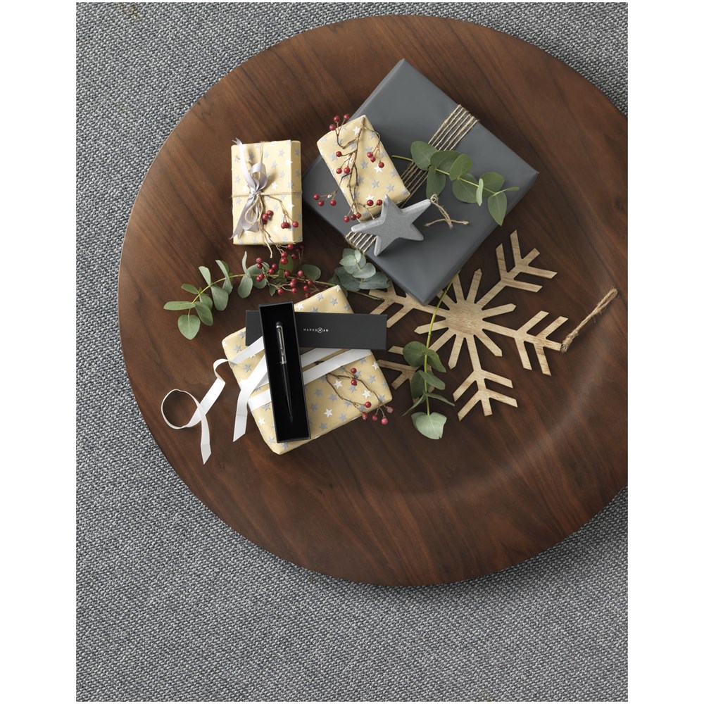 Stylo à bille stylet au design exclusif avec motifs élégants sur la partie inférieure du corps. Recharge d'encre noire de qualité supérieure incluse et emballage dans une boîte cadeau Marksman.