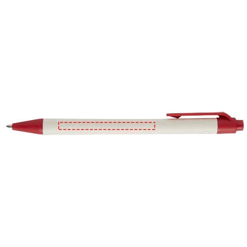 Stylo bille à bouton-poussoir avec un corps fabriqué à partir de briques de lait recyclées (jusqu'à 70 %). Le bouton, le clip et la pointe sont en plastique PLA. Les briques de lait usagées sont collectées, triées, traitées et transformées en papier, transformant ainsi les déchets en quelque chose d'utile.